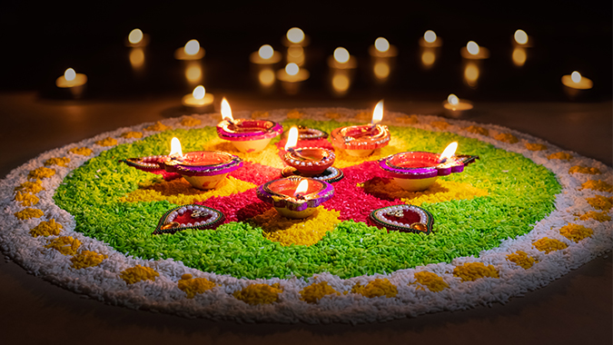 Enhance your celebration with luxurious traditional and modern Diwali decorations, from flower arrangements to festive lights and elegant props.